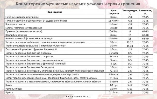 Сроки хранения кондитерских изделий в зависимости от вида крема:
