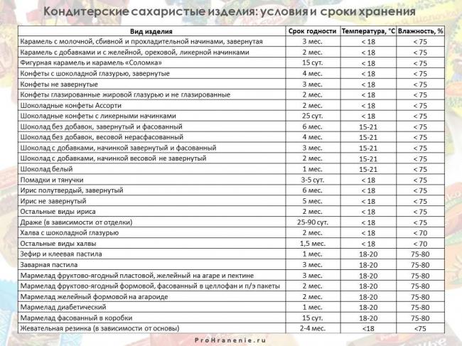 Как и сколько хранить сладости (таблица). Нажмите на картинку, чтобы увеличить (откроется в новом окне)