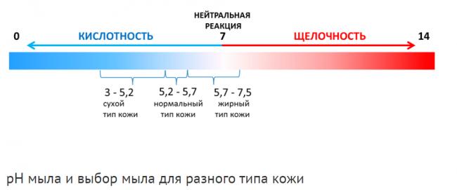 Для жидкого мыла важным показателем является pH-баланс. В отличие от твердого он близок к нейтральному от 6 до 7 единиц. Кусковое мыло имеет слабощелочной рН-баланс, он составляет 9 до 11 единиц. Любые гигиенические средства влияют на состояние кожи. Мыло смывает не только загрязнения и убивают бактерии, но и воздействуют на поверхностный липидно-кислотный слой.
