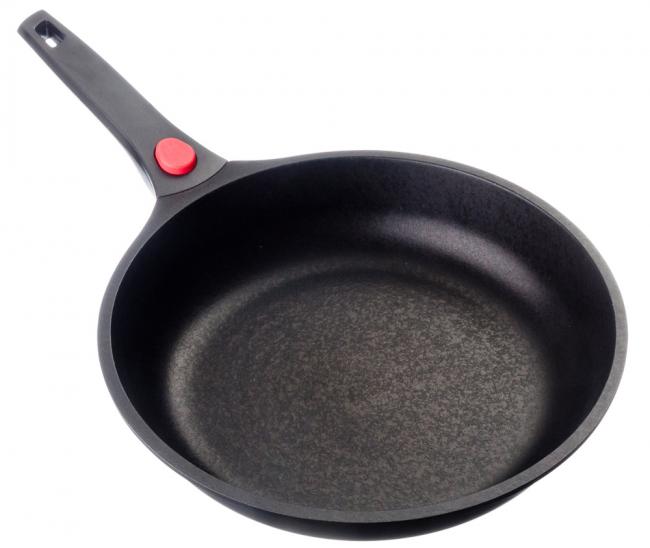 Обратите внимание на толщину дна и стенок. У хорошей сковородки стенки должны быть толще 5 мм, а дно толще 8 мм. «Толстая» сковорода разогревается дольше, но равномернее и дольше удерживает тепло. На упаковке должна быть информация о толщине и слойности дна сковородки.