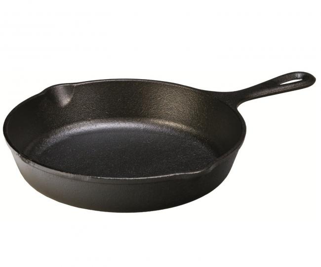 Традиционная посуда, добротная и прочная. Чугунная посуда медленно нагревается, блюда прожариваются равномерно, что сохраняет пользу и вкус продуктов. Чугунную сковороду смазывают маслом только перед первым использованием. Со временем пористая поверхность приобретает дополнительную прочность и защитные свойства.