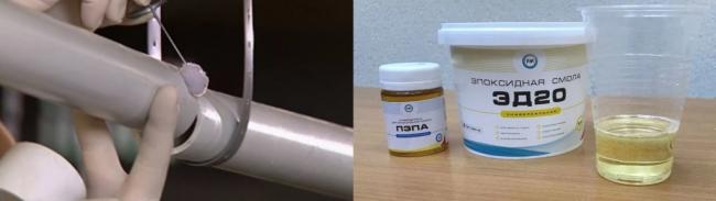 Эпоксидные смолы. Подходят для склеивания всех видов пластика. С этим заданием успешно справится даже самая обычная ЭД-20 с любым дешевым отвердителем. Разнородные трубы допускается склеивать «холодной сваркой». Она также сделана на эпоксидной основе, но адгезия у нее несколько слабее.