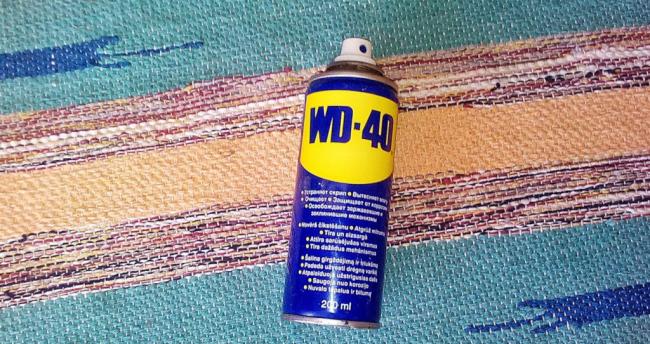 В качестве растворителя клеевой основы можно использовать спрей WD-40. Это многофункциональный препарат является маслянистым и обладает очень хорошими смазывающими свойствами.