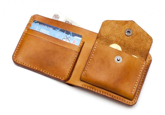 Кожаный кошелек надежен, не требует сложного ухода, служит в течение 3-5 лет. Шьют его из коровьих или телячьих видов материала, они мягче и с ними удобнее работать. При шитье вручную предварительно прокалывают отверстия для стежка. Материал растительного дубления боится влаги, но он эластичен. На нем можно создать резьбу, пирографию, тиснение. Основной недостаток – возникновение со временем микротрещин. Для прошивки используют капроновые нитки, их можно подплавить, тем самым скрыть узлы. В декоративных целях, чтобы подчеркнуть цвет кожи, шьют нитью более темного оттенка.