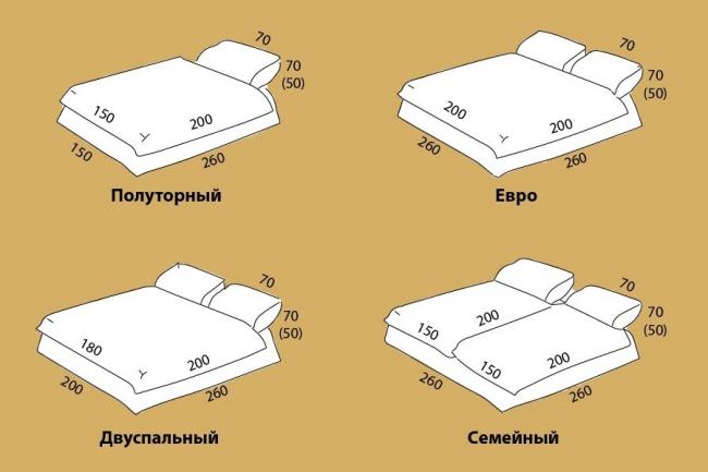 Стандартная размерная сетка тканевых изделий. А теперь пройдемся по каждому составляющему постельного комплекта.