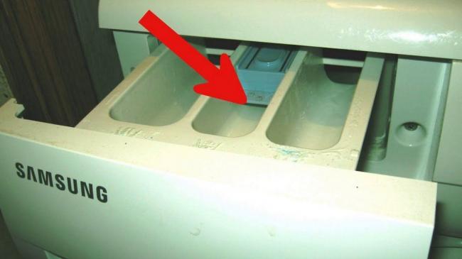 Как выглядит лоток для стирального порошка и где он расположен