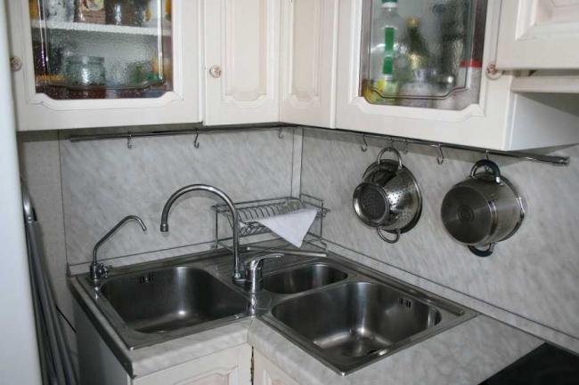 - освобождается место на столешнице, необходимая утварь расположена на навесных полочках для принадлежностей;