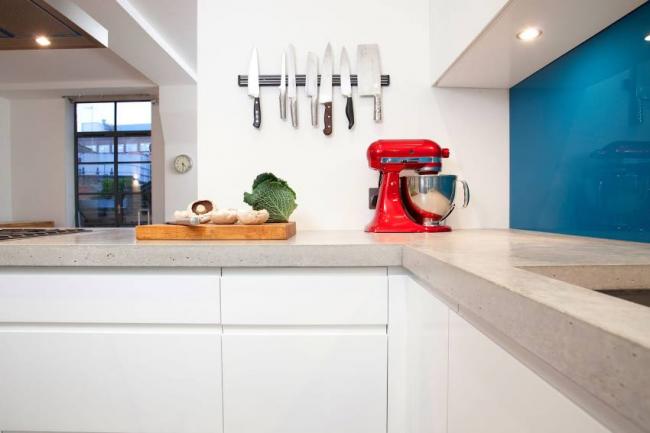 Форма полочек бывает самой разнообразной: от квадратных до округлых, прямоугольных и угловых, их удобно разместить рядом с варочной поверхностью или мойкой. Около раковины в них размещают столовые приборы, а возле плиты — лопаточки, которыми перемешивают еду во время готовки.