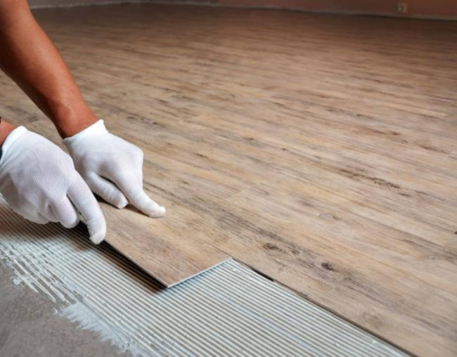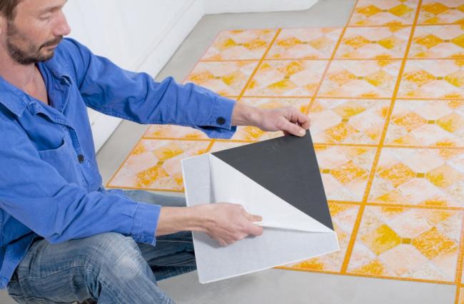 Существует так называемая самоклеющаяся виниловая плитка для пола.