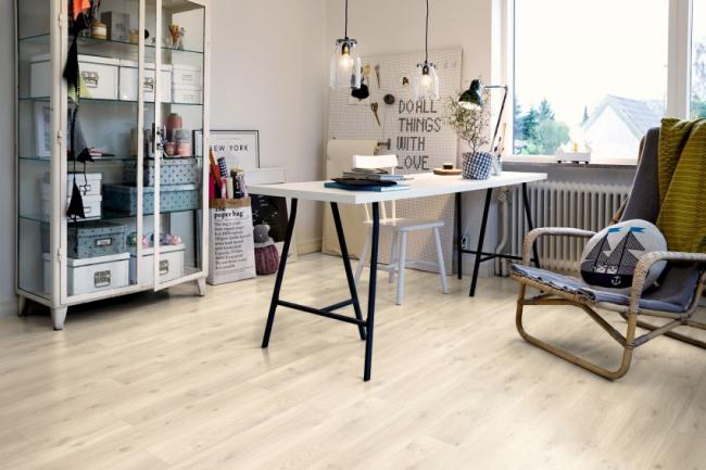 Замковая кварцвиниловая плитка универсальна по способу монтажа и не требует укладки подложки