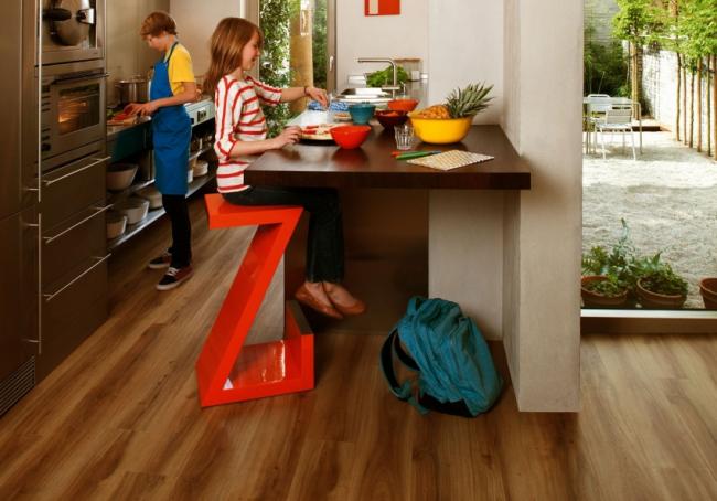 Другое важное преимущество – устойчивость к повышенной влажности воздуха и прямому воздействию влаги. Специалисты оценивают этот материал как устойчивый к воде на 100%, что немаловажно в случае укладки на кухне или в ванной