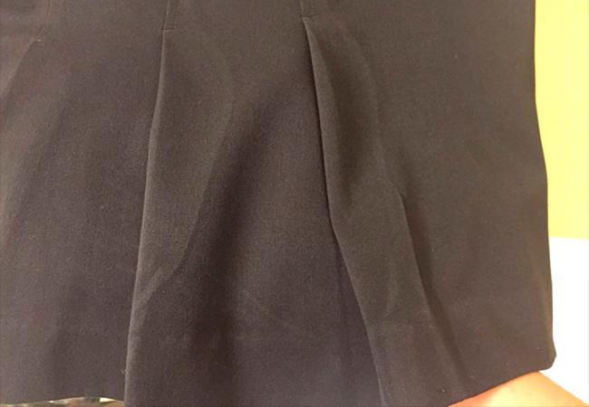 - Можно попытаться отпарить заблестевший участок брюк. Для исправления подобного блестящего дефекта следует обработать лассы паром (увлажнить водой и в течение трех-пяти секунд воздействовать паром через влажный проутюжильник, не прижимая сильно утюг). Также убрать блеск с брюк отпариванием можно следующим образом: смоченную льняную ткань кладут на блестящее место и проводят горя-чим утюгом, слегка касаясь ее, или оборачивают горячий утюг мокрой тканью и водят над лассой, не прикасаясь утюгом к изделию до полного снятия паром блеска.