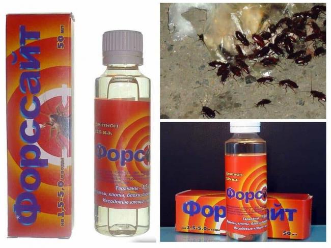 Жидкость против тараканов форсайт представляет собой концентрат, который используют при подготовке эмульсии. В состав жидкости входят добавки и активное вещество фентион. Перед использованием жидкость разводят. Подготовленный состав применяют для обработки участков с оотеками, а также мест дислокации насекомых.