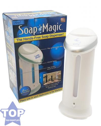 Этот дозатор для жидкого мыла оснащен чувствительным инфракрасным датчиком, расположенным на верхней части устройства, который активируется при приближении рук пользователя. Благодаря этому устройству не требуется касание руками, что способствует борьбе с распространением бактерий и грязи. Кроме того, Soap Magic дозирует необходимое количество мыла для оптимального использования, что позволяет экономить его расход.