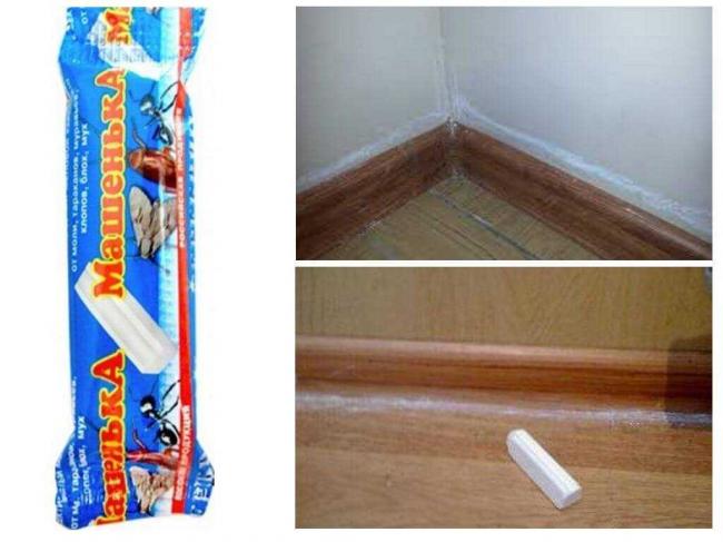 Чтобы насекомые не проникли от соседей или с улицы, необходимо обрабатывать участки под окнами и возле них. Кроме того, нужно обмазать Машенькой вентиляционные отверстия и входные двери (порог и коробку). Как правило, основная часть паразитов умирает спустя 2 суток после нанесения линий таким мелком. Остальные особи из популяции будут жить еще две или три недели. После того как пройдет положенное время, можно смыть средство или промазать новые линии рядом со старыми.