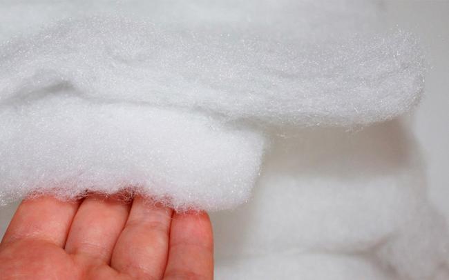 Этот вариант считается одним из лучших в синтетическом классе. Он представляет собой нетканый компонент, который состоит из волокон, имеющих спиралевидную форму. В основе холлофайбера — полиэстер, причем 100%. Он не станет причиной проблем со здоровьем, не спровоцирует развитие аллергии, не издает никаких запахов и неплохо проводит и сберегает тепло. Такие вещи можно своими руками стирать, они могут управлять теплообменом и очень легкие. Цена у них приятная.