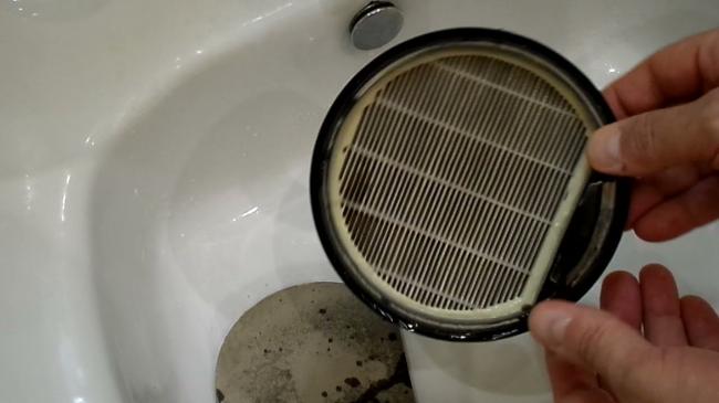 Пластиковую сетку протирают по мере необходимости. При сильном загрязнении ее снимают и моют в тазу с порошком. Прессованный фильтр только продувают и вытряхивают.