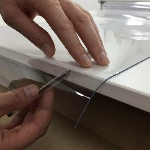 Пленочное покрытие предотвратит появление царапин: несмотря на высокую степень прозрачности, оно достаточно толстое, чтобы защитить столешницу от случайных порезов ножом или канцелярскими приборами.