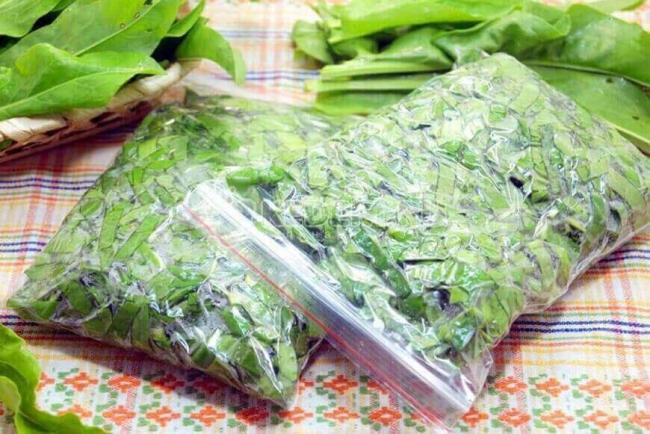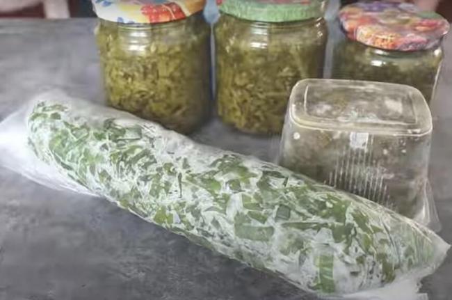 Цвет щавеля после обработки кипятком становится оливковым, что обусловлено наличием кислот в составе. Обычные сорняки сохраняют зеленый оттенок и могут серьезно испортить вкус будущего зеленого борща или супа. Чтобы не допустить этого, нужно извлечь все травянистые растения до или после обработки кипятком. Затем подготовленная зелень помещается в пакеты или пластиковые контейнеры и переносится в морозильник.