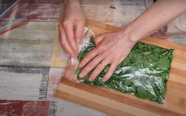 - Выложите измельченную зелень в пакет, подходящий для замораживания.