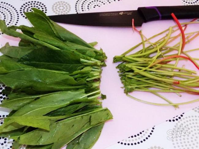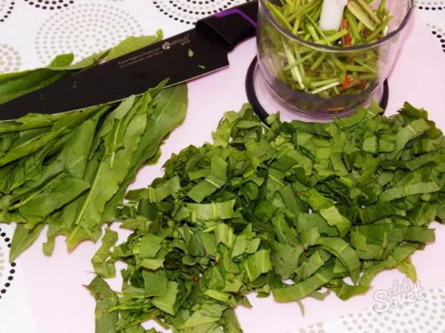 - на первом этапе листья перебирают, моют и далее мелко рубят – таким образом, каким они будут использоваться в блюде;