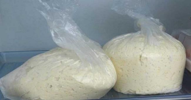 - Небольшими порциями. Тесто нужно замесить и обработать маслом. Затем из продукта формируются небольшие лепешки, которые оборачиваются пленкой. В пакете нужно проделать дырочки, чтобы обеспечить приток воздуха к дрожжам, и убрать его в морозильную камеру.