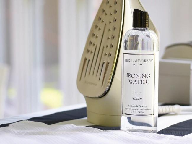 - Первый из них – специальная жидкость для утюгов. Она полностью избавлена от опасных для утюга компонентов, что делает данный состав абсолютно безопасным для глажки белья.