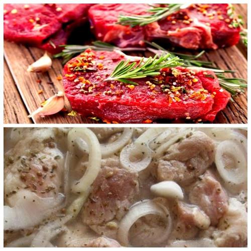 Лучше всего поддается заморозке мясо, которое мариновалось в растворах с применением малого количества кислоты. К ним относится маринад с томатной пастой, соусом или с томатами. Также хорошо поддаются заморозке маринады с добавлением минеральной воды и небольшого количества уксуса.