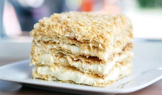 Классический рецепт Наполеона предполагает использование слоеного теста для изготовления коржей. А крем бывает заварным, сметанным или сливочным на сгущенке.