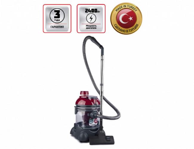 Этот номинант является профессиональным устройством для сбора пыли. Он имеет аквафильтр, который не просто втягивает пыль, но и способствует эффективному очищению воздуха. Это хороший вариант для аллергиков или тех, у кого в доме маленькие дети. С помощью Arnica Bora можно за считанные минуты максимально очистить поверхности, не оставляя вредных микрочастиц. Также к плюсам модели стоит отнести высокую мощность всасывания (400 Вт), а опция ароматизации позволит наполнить дом приятными ароматами. Управление техникой не вызовет сложностей, интерфейс устройства понятный, а кнопки достаточно крупные. Предусмотрено автоматическое сматывание шнура, вес пылесоса относительно небольшой, как и габариты. Примечательно, что в комплекте идут семь насадок, они подойдут для любых поверхностей и предметов, есть даже насадка для матрасов и щетка для чистки обивки.