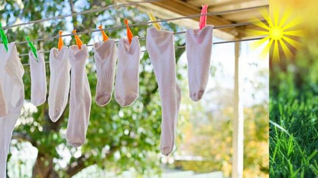 Извлеките из пакета вещи, положите их в теплую воду. Все главные процессы того, чтобы отстирать белые (светлые) носки, вы уже выполнили. Остается лишь хорошо прополоскать их и повесить сушиться.