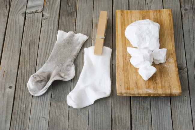 Популярные секреты отбеливания нам переданы с бабушкиных времен. Если вы относитесь к вещам бережно, и не допускаете стойкого загрязнения, носки не обязательно стирать. Можно просто приготовить отбеливающий раствор.