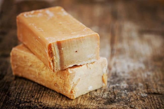 Помимо хозяйственного мыла используют мыло-пятновыводитель или отбеливающее.