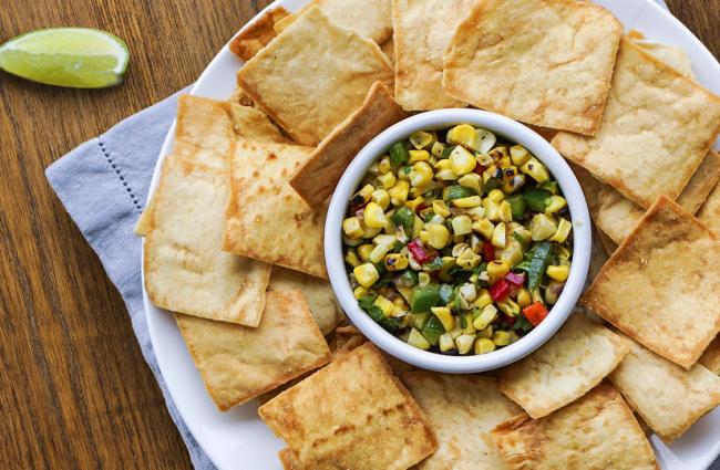 Лавовые чипсы. Купите пироговый хлеб или найдите его в банке, нарежьте квадратиками, сбрызните растительным маслом и посолите, смажьте маслом большую тарелку, выложите кусок пирога и нагревайте 2 минуты на максимальной мощности. Возьмите его и посмотрите свой любимый фильм