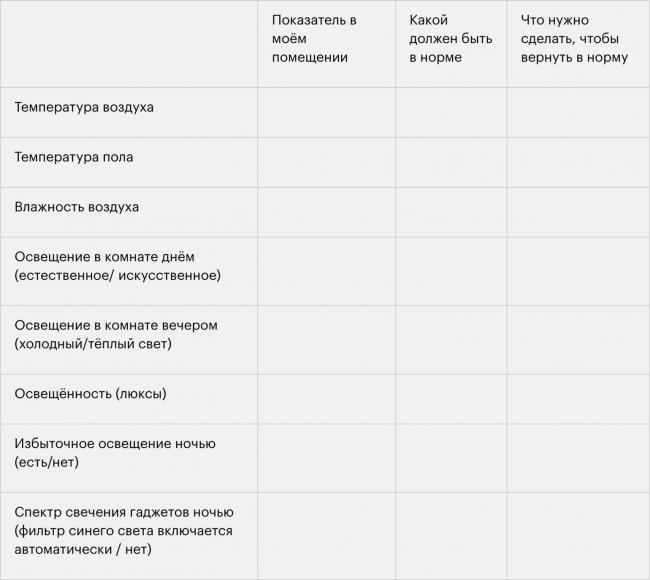 Задание. Скопируйте и заполните таблицу, чтобы понять, насколько микроклимат вашей комнаты близок идеальному.