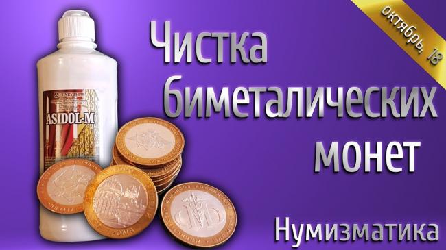 Чистка биметаллических монет. Асидол.