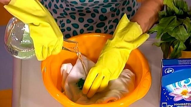 - Рекомендовано оставить вещь в данном растворе на ночь.