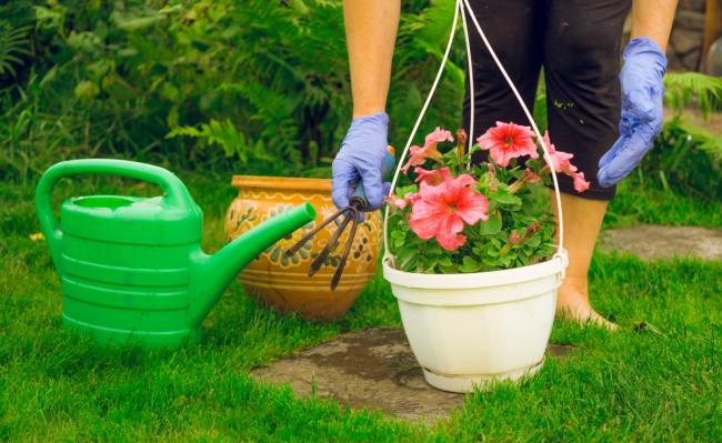 Помня о том, что в кашпо почва быстро просыхает, поливать растения нужно не по графику, а по необходимости. В обычную погоду — ежедневно, в жару – дважды в день. Желательно теплой водой, не попадая на цветки и листья.