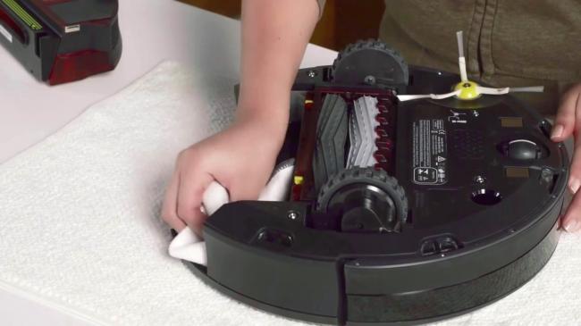 Если робот во время уборки ведёт себя ненормально (двигается по какой-то непонятной траектории), то стоит проверить состояние направляющего колеса. Просто переверните устройство и посмотрите, не застряло ли что-нибудь в колесе. Необходимо просто удалить засор и тогда девайс начнёт двигаться так, как ему положено.