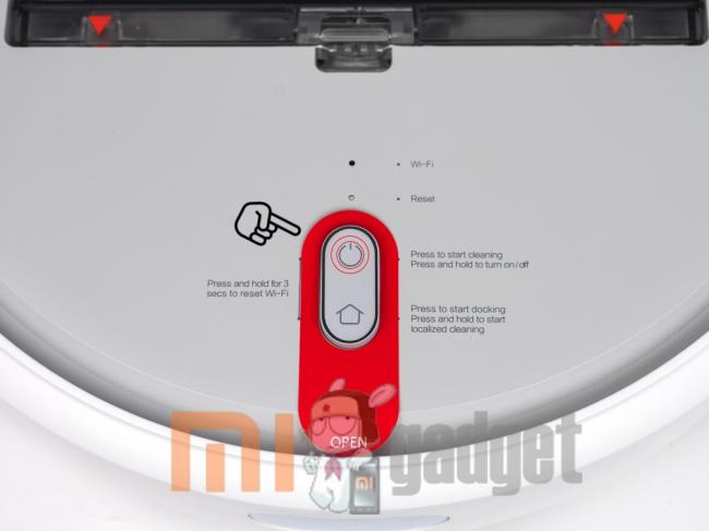 На корпусе есть кнопка – нажмите на нее и подержите несколько секунд. Робот автоматически сбросит систему, в том числе настройки синхронизации, сети, режим уборки. Далее нужно будет заново подключить пылесос к Wi-Fi через Mi Home с помощью смартфона.