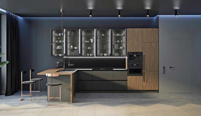 Если вы планируете поместить мебель в непосредственной близости от плиты, то необходимо позаботиться и об установке вытяжки, иначе, через некоторое время вашему взору предстанет не очень приятная картина испорченных паром шкафов. Ведь она не только избавляет вас от неприятных запахов, но и защищает мебель от конденсата, пара , исходящего от кипящих кастрюль, капель жира.