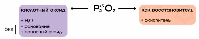 Тут все очень просто! P2O3 — кислотный оксид, он проявляет кислотные свойства. Значит, он способен вступать в основно-кислотные взаимодействия со своими противоположностями — основаниями и основными оксидами — с образованием солей.