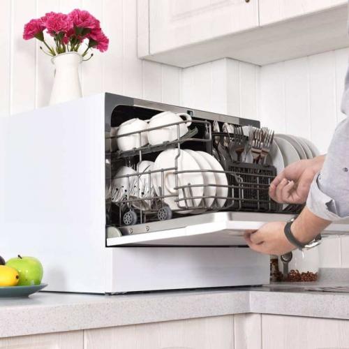 Малогабаритные модели посудомоечных машинок незначительно превышают размеры обычной микроволновой печи, к тому же они мобильны. При необходимости посудомойку можно отсоединить от коммуникаций и переместить. Скромные размеры машинки позволяют устанавливать ее в ограниченных пространствах, а производительности вполне достаточно для небольшой семьи из двух человек.