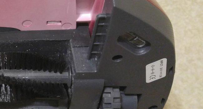 На правой (если смотреть сверху) части устройства расположен оптический датчик движения вдоль стен, чтобы при перемещении не задевать их. Выступающие щеточки при этом «подмахивают» пыль под основной валик.