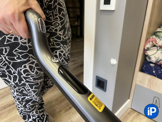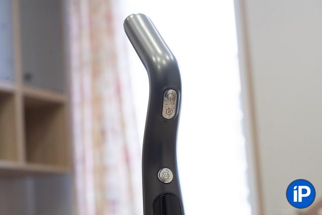 Поскольку я впервые пользуюсь вертикальными пылесосами, для меня стало откровением, что для откидывания ручки нужно придерживать нижнюю часть ногой. Впервые услышав хруст, подумал, что что-то сломал — но нет, так и должно быть. При возвращении на исходную позицию хруст слабее.