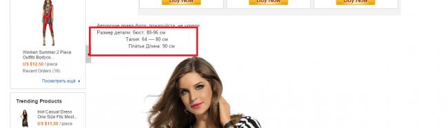 Видим, что параметры Bust (бюст), Waist (талия) и Hip (бедра) двойные, так как вещь эластичная.