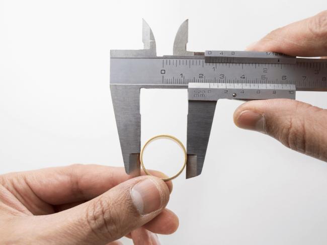 Решили сделать сюрприз? Это легко, если у вас есть кольцо для примера. Его можно отнести и измерить в ювелирном магазине, а можно надеть на свой палец до упора, обвести ручкой и измерить описанными выше способами. Но что делать, если нет такого лекала?