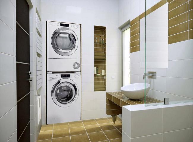 Отсюда хорошая новость: если в своей квартире вы нашли место для стиралки, то с большой вероятностью, у вас фактически готово место для сушилки. Очень удобно ставить сушильную машину на стиральную: это экономит место и сокращает вибрацию приборов при работе.