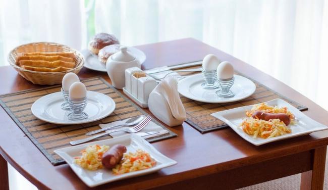 Что касается посуды, то сервировка на завтрак к приходу гостей подразумевает использование хрусталя, приятного сервиза и чистой белой посуды.