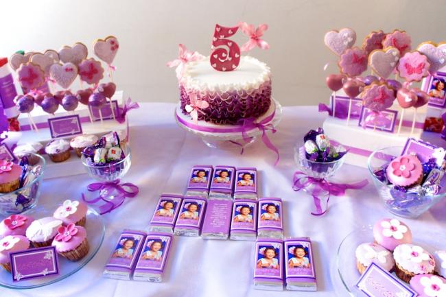 Данный вариант уже давно практикуется детских торжествах, праздниках для взрослых. В различных организациях можно заказать оформление, изготовления сладкого меню под определённый стиль. Дома это сделать тоже несложно. В оригинале для создания места для сладостей используется стол на колёсиках.